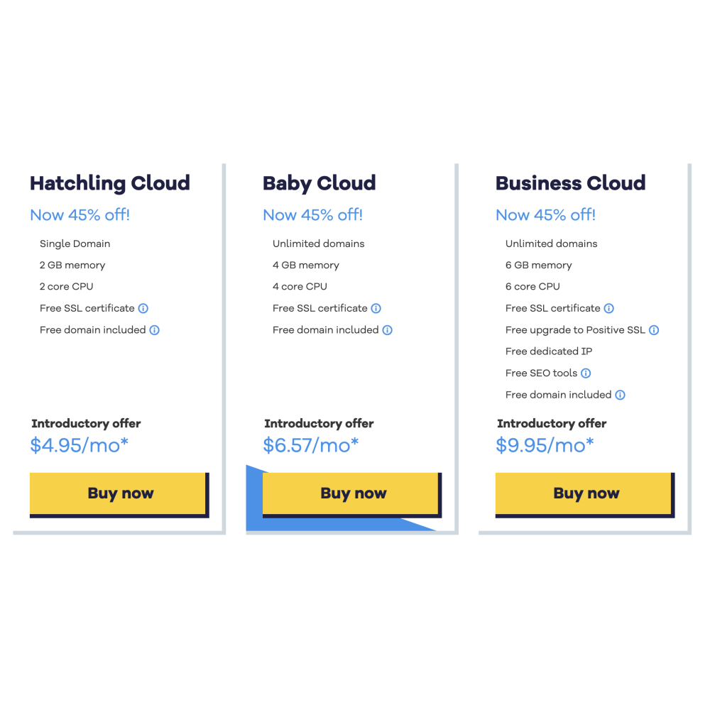 - Recomendamos "Business Cloud" Para plataforma SUDI y Baby Cloud para sitios web